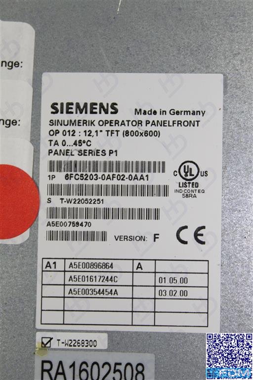 Sinumerik OperatorPanelfront OP 012 6FC5203-0AF02-0AA1 Version: F SIEMENS